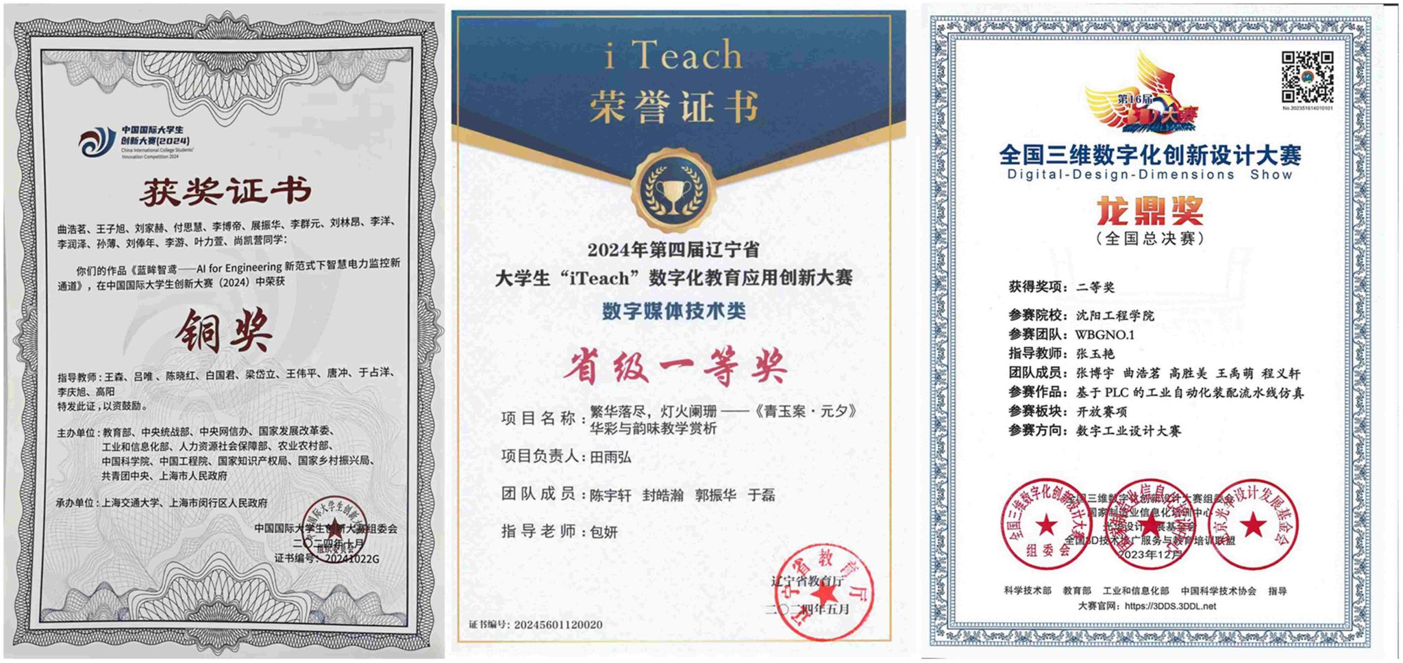 强化班成立至今,师生先后赴北京、大连、锦州、葫芦岛等近10个省市,参加各类国家级、省级专业竞赛赛事,获省级以上奖励百余项。2024年,学生在TI杯全国大学生电子设计竞赛辽宁赛区,获得辽宁省一等奖4项、二等奖1项,一等奖获奖总数在省内所有参赛高校中排名第二。在中国国际大学生创新大赛中,获得国家级铜奖。2025年,学生在全国大学生数字媒体科技作品及创意竞赛中获得全国一等奖。在全国大学生节能减排社会实践与科技竞赛中获得国家级二等奖1项,三等奖1项。
