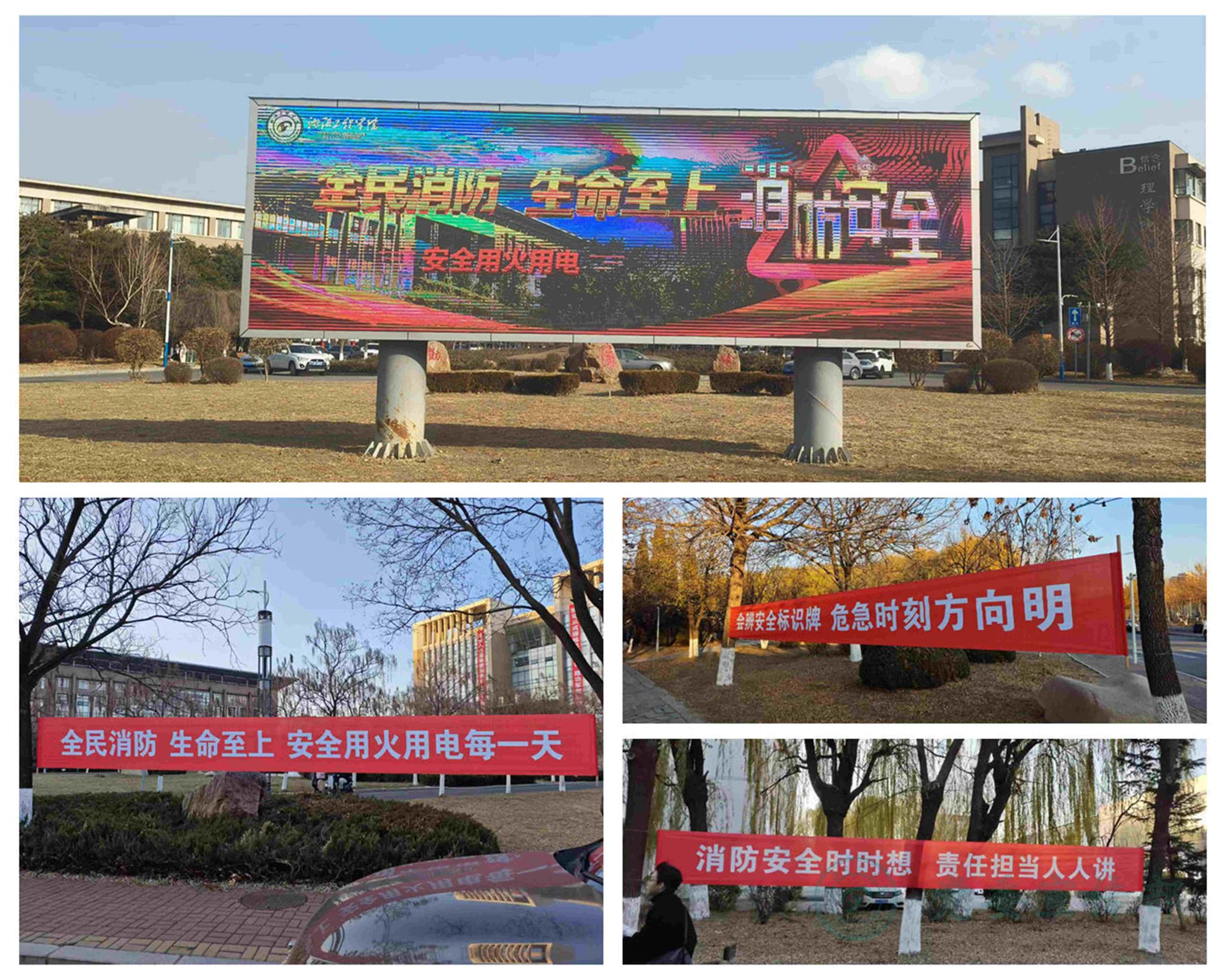 宣教并举实现全员覆盖。线上平台持续推送66条安全推文,累计阅读3.3万人次;线下在学校公共区域的电子屏循环播放警示片,12条醒目条幅、10块精心设计的展板构成了一道道流动的安全知识长廊。37场专题学习研讨会组织800余人次教职工学习应急管理和消防安全法规,剖析校园常见火灾案例,提升防范火灾意识。70余场“全民消防 生命至上”主题团日活动,让安全知识在互动问答和情景模拟中深入人心。首届校园消防安全知识竞赛吸引了3000余名师生参与,8个集体和807名个人获得表彰。针对食堂、物业等重点岗位人员,开展200余人次专项技能培训,确保一线员工熟练掌握“会报警、会疏散、会扑救初起火灾”的关键技能。