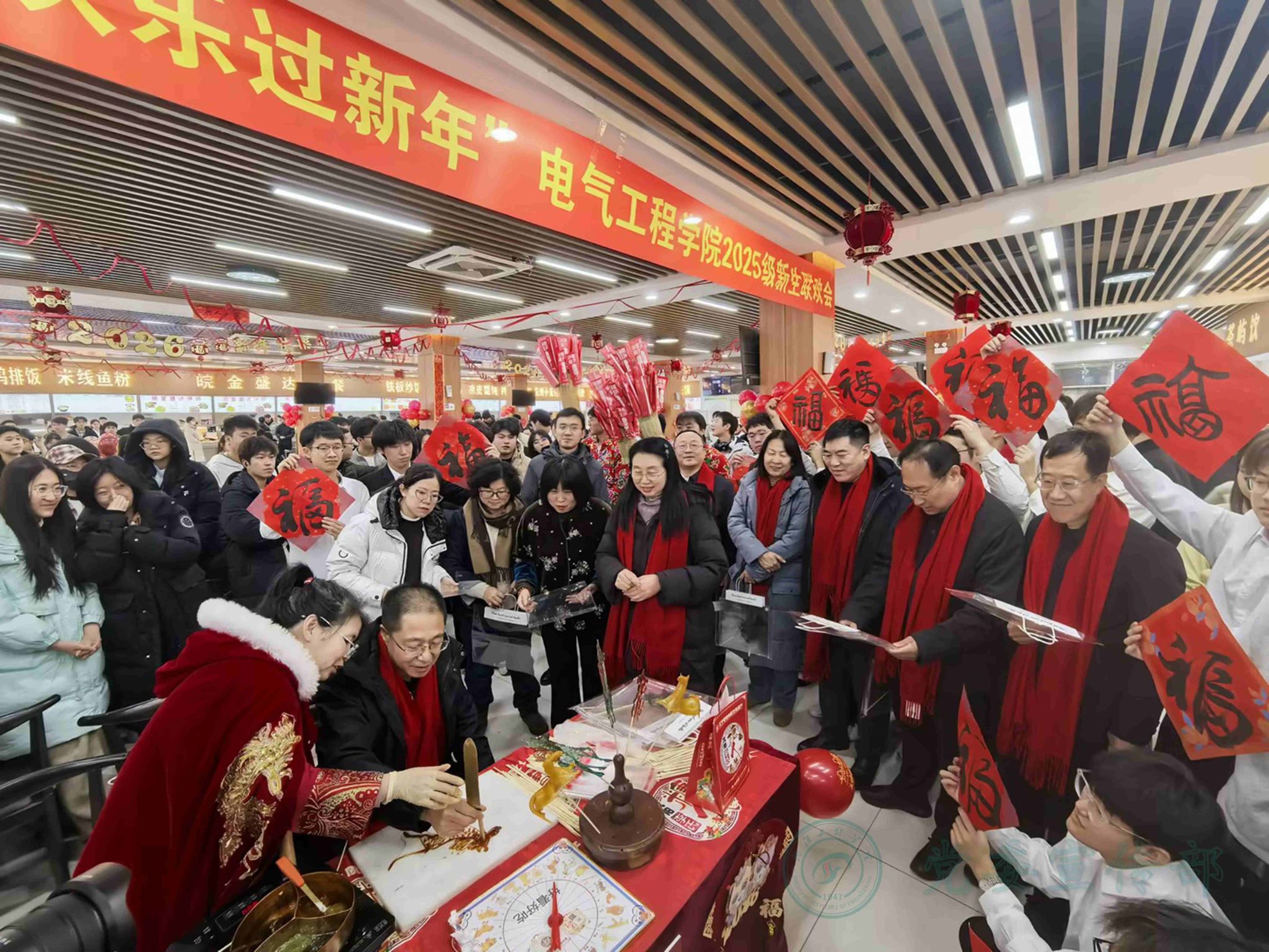 岁末寒冬暖,情聚庆新元。12月30日,学校精心策划的“爱在沈工程 欢乐过新年”2025级新生庆元旦活动温馨启幕。全体在校领导、党委常委,校长助理,以及学生工作处、后勤中心、各二级学院领导班子、全体辅导员和班导师,与2025级新生欢聚一堂,在欢声笑语中传承中华优秀传统文化,共迎新年。