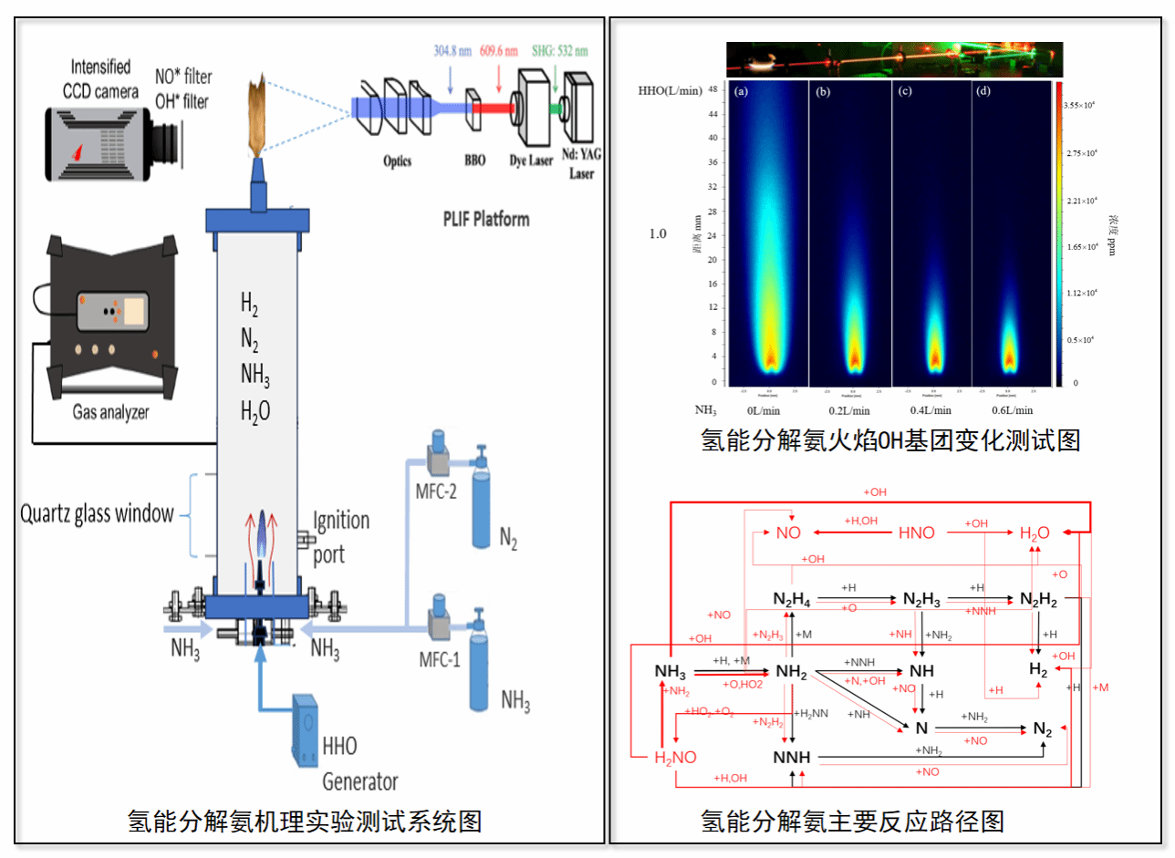 氢氨零碳燃料是工业领域深度减碳与绿电大规模消纳的重要载体,氨分解燃烧是破解氨燃烧稳定性低、NOₓ排放高的关键路径。然而,传统氨分解依赖高温或贵金属催化剂,中低温非催化场景下因活化能过高导致转化效率不足,成为制约氨燃料燃烧应用的技术瓶颈。同时,工业锅炉低负荷运行时脱硝效率骤降的行业共性难题长期存在,现有技术难以平衡燃烧稳定性与减排。基于此,本项目依托辽宁省清洁燃烧发电与供热技术重点实验室研发氢能介导氨气分解燃烧脱硝技术、研制氢氨耦合燃烧器,旨在突破中低温氨分解的技术壁垒,实现工业燃烧领域氢-氨零碳燃料的高效助燃与深度脱氮。