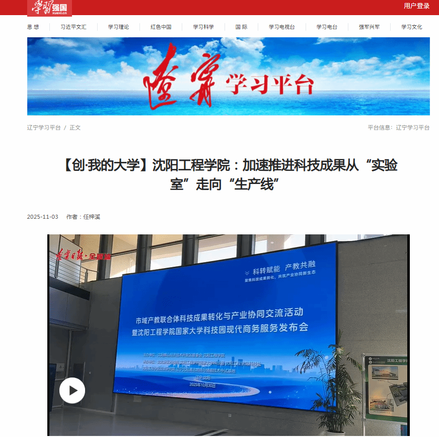 学习强国辽宁学习平台:沈阳工程学院:加速推进科技成果从“实验室”走向“生产线”