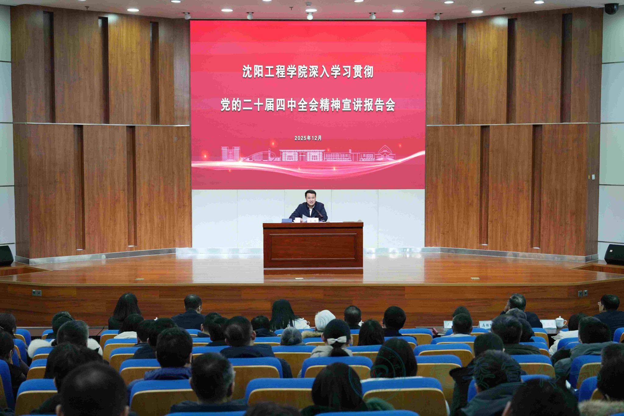 为迅速推动党的二十届四中全会精神与省委十三届十次全会精神在校园落地生根,切实凝聚全校师生思想共识与奋进力量,12月3日,学校在学术报告厅召开中共沈阳工程学院委员会学习贯彻党的二十届四中全会精神专题报告会,全体在校校领导、党委常委,全体中层干部、辅导员、组织员、宣传员、党支部书记,学校党的二十届四中全会精神师生宣讲团成员,校院两级学生会骨干成员参加会议。会议由党委副书记方鸿志主持。12月3日,学校召开学习贯彻党的二十届四中全会精神专题报告会。...