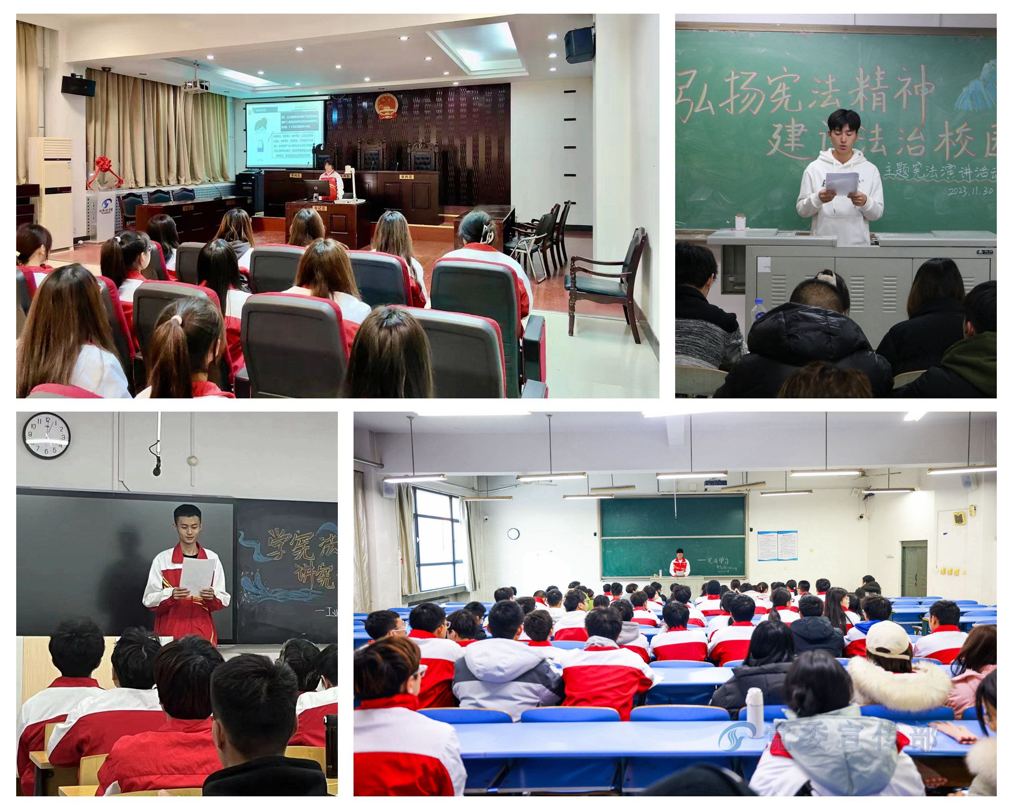 “宪法宣传周”期间,学校组织了丰富多彩的学习宣传活动。校团委开展了“模拟法庭”活动,以沉浸式教育方式进行普法宣传;自动化学院团委开展“弘扬宪法精神 建设法治校园”主题演讲活动,以演说的形式增强宪法宣传的感染力;经济管理与法学院成立“青年法治宣传志愿服务队”,以授旗仪式拉开常态化法治宣讲工作的序幕;校学生会组织开展了主题升旗仪式,并向全校青年发出自觉尊法学法守法用法的青春号召;“魔法课堂”社团通过“法律诊所”的形式,为学生们解答疑惑;法学专业学生开展宪法晨读活动,通过仪式教育树立法学专业认同和专业自信。