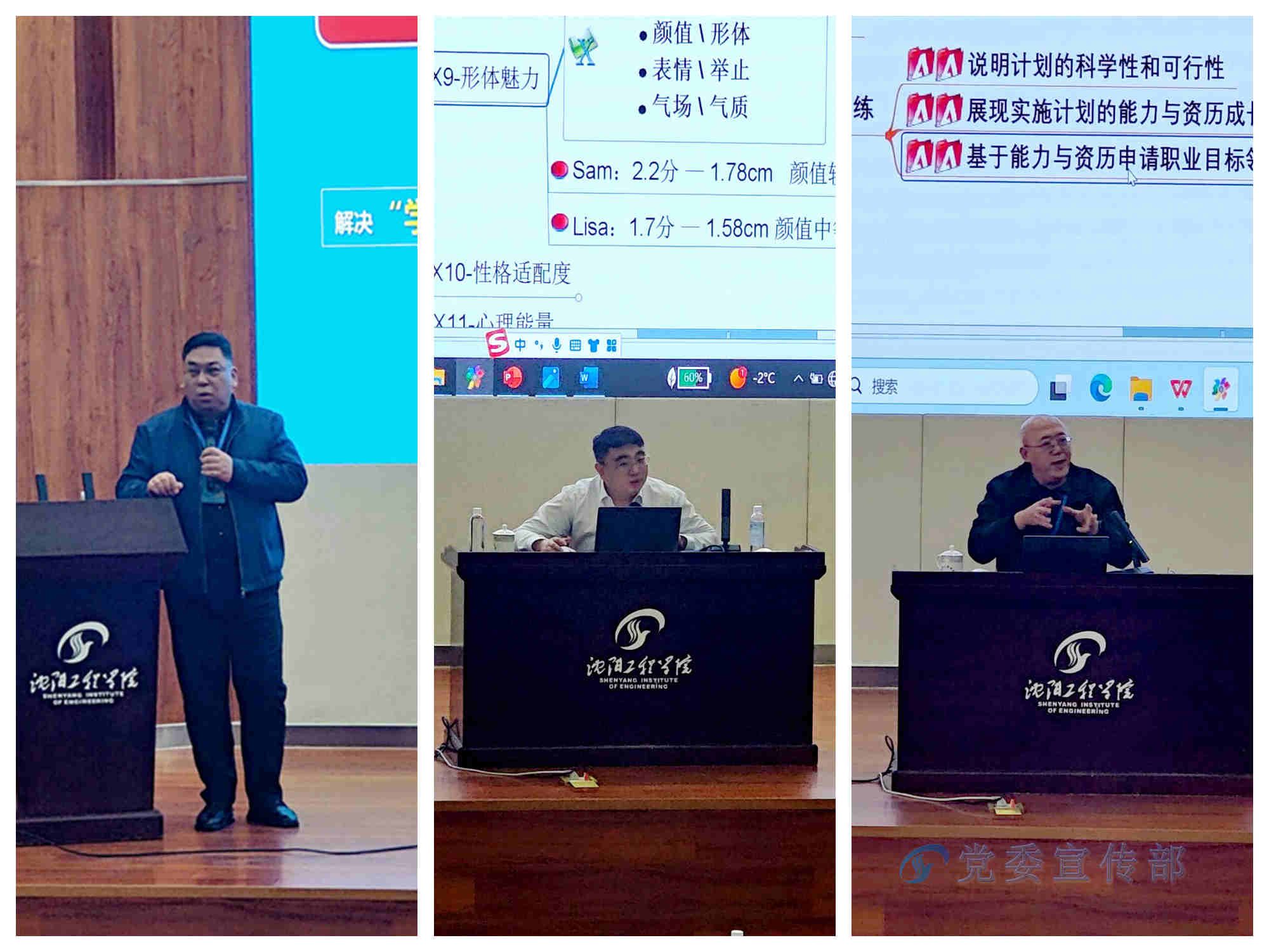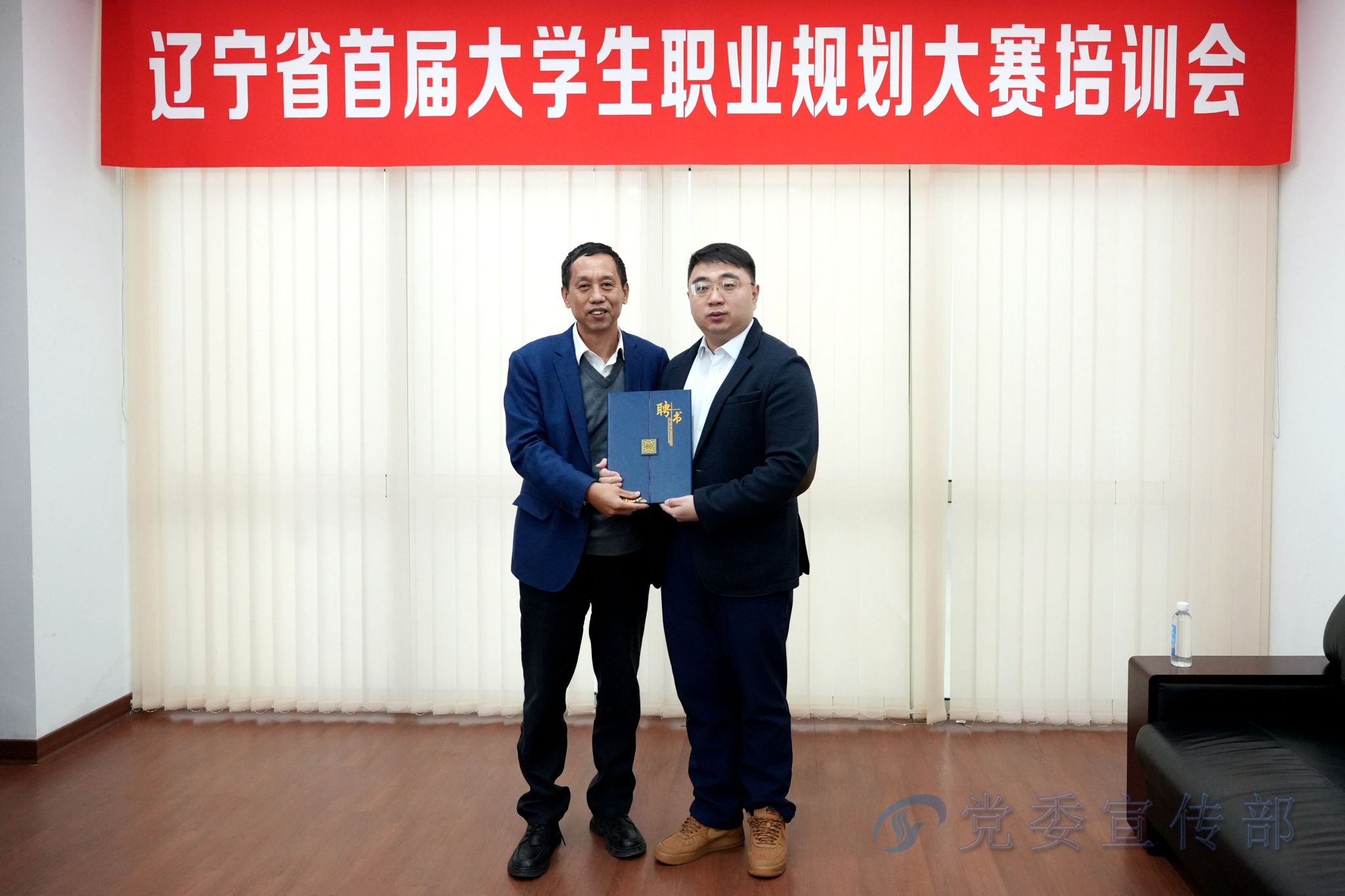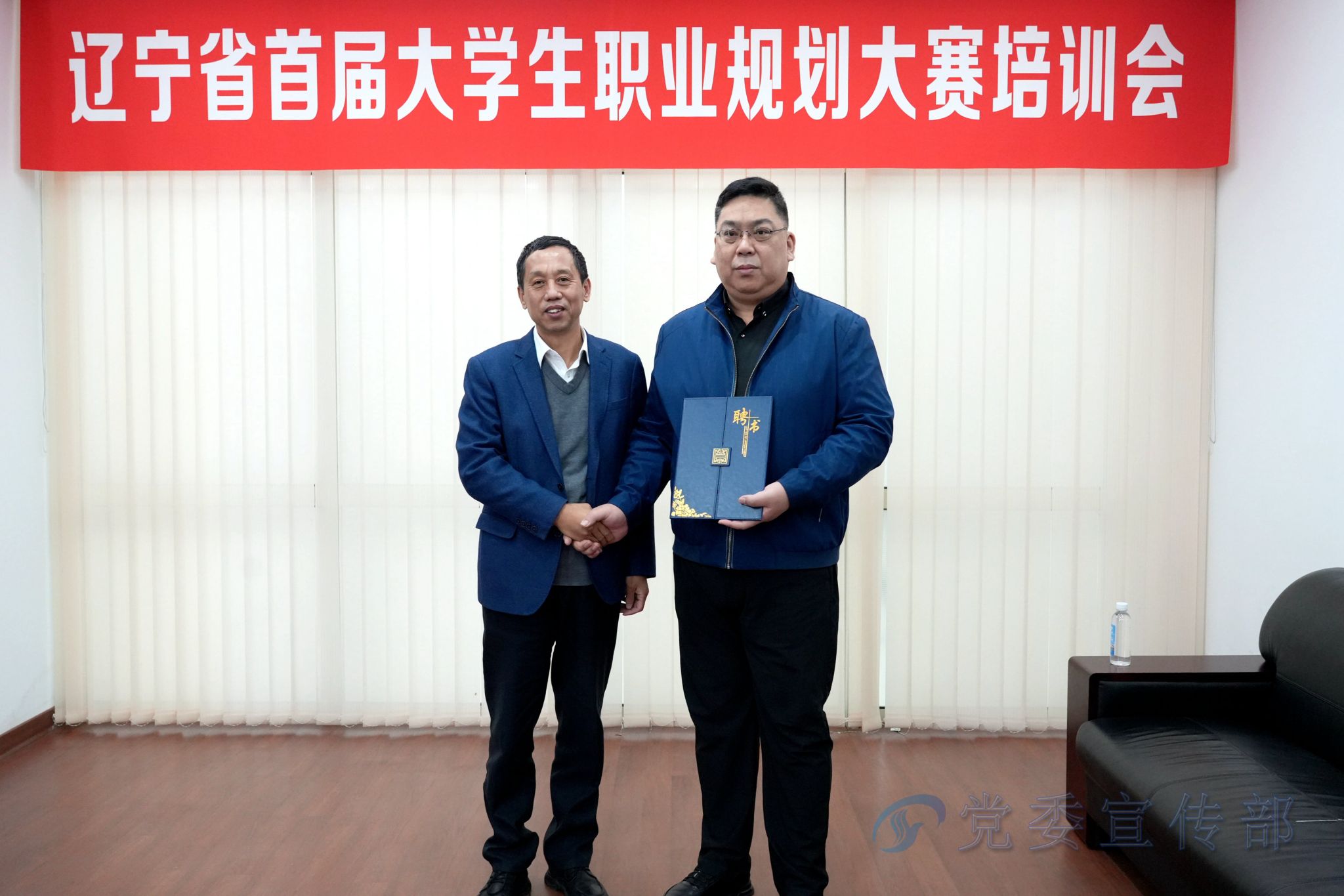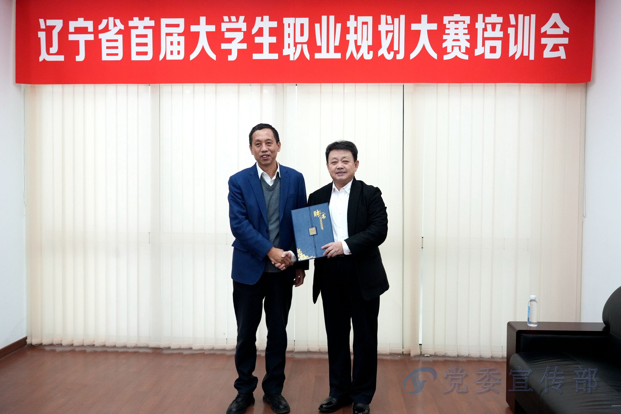 培训会议前,温海涛为全国就业创业指导知名专家刘敬东教授颁发“辽宁省首届职业规划大赛专家组组长”聘书;佟刚为张强、刘敬东、牛晋、晁劲鹏四位培训专家颁发“沈阳工程学院就业创业导师”聘书。