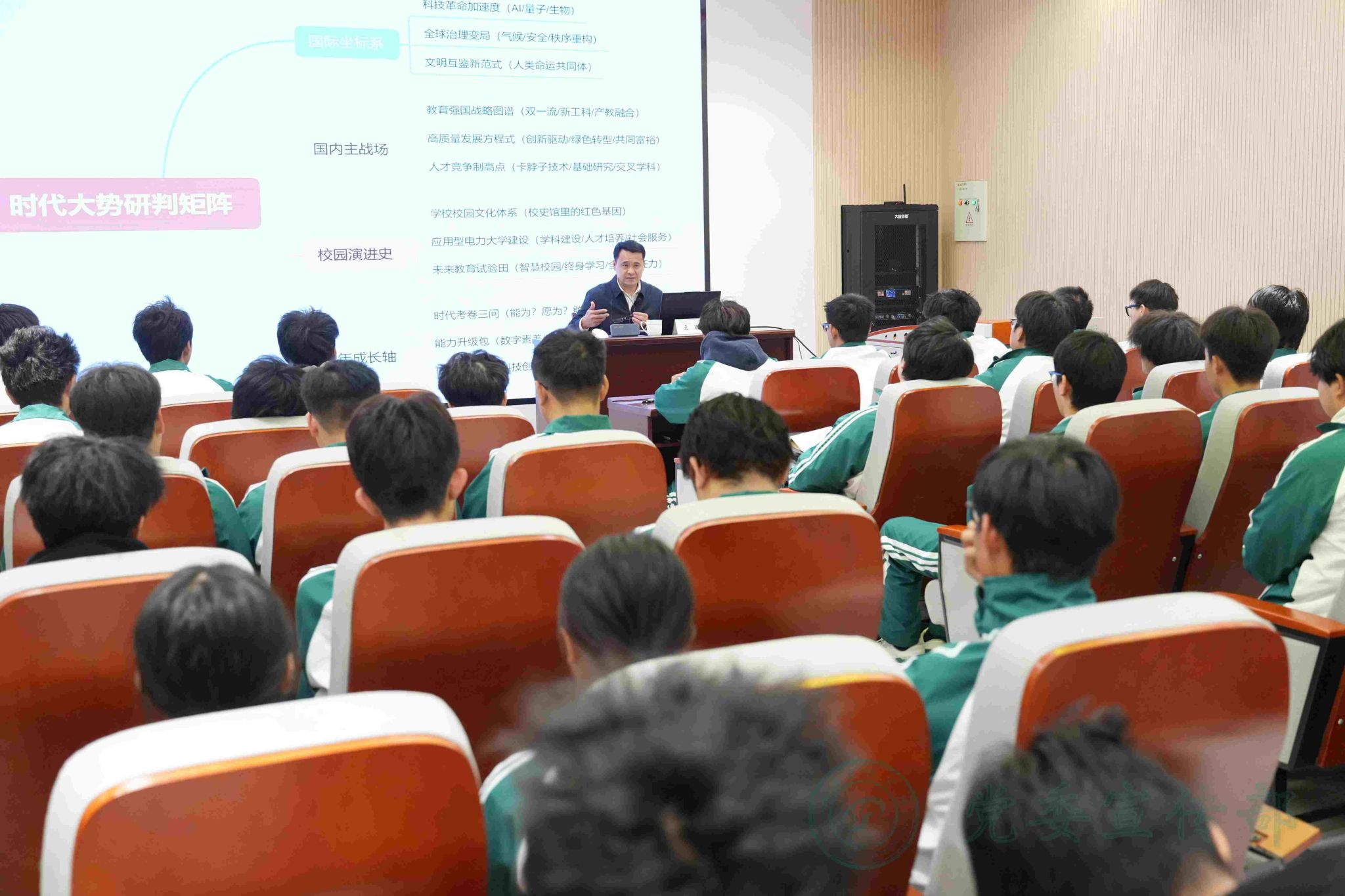 解析时代大势。王强从国际国内双维解读发展格局,指出当前国际形势复杂多变,在大国关系深度调整、第四次工业革命加速演进、全球发展深度融合的趋势下,中国高质量发展步伐稳健,中华民族伟大复兴进入不可逆转的历史进程。国内层面,强国建设、民族复兴是新时代中心任务,教育、科技、人才是发展核心支撑,他鼓励学生将个人成长融入国家发展的战略蓝图,主动扛起时代赋予的使命担当。