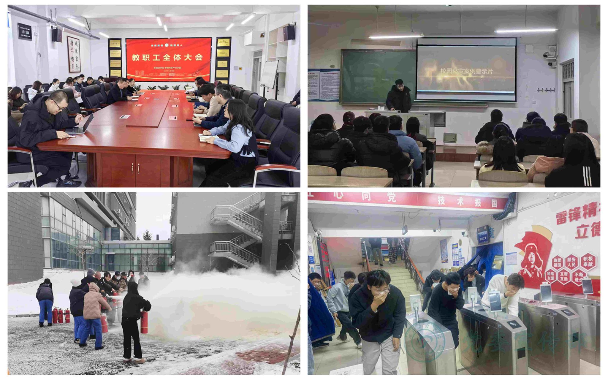 宣教并举实现全员覆盖。线上平台持续推送66条安全推文,累计阅读3.3万人次;线下在学校公共区域的电子屏循环播放警示片,12条醒目条幅、10块精心设计的展板构成了一道道流动的安全知识长廊。37场专题学习研讨会组织800余人次教职工学习应急管理和消防安全法规,剖析校园常见火灾案例,提升防范火灾意识。70余场“全民消防 生命至上”主题团日活动,让安全知识在互动问答和情景模拟中深入人心。首届校园消防安全知识竞赛吸引了3000余名师生参与,8个集体和807名个人获得表彰。针对食堂、物业等重点岗位人员,开展200余人次专项技能培训,确保一线员工熟练掌握“会报警、会疏散、会扑救初起火灾”的关键技能。