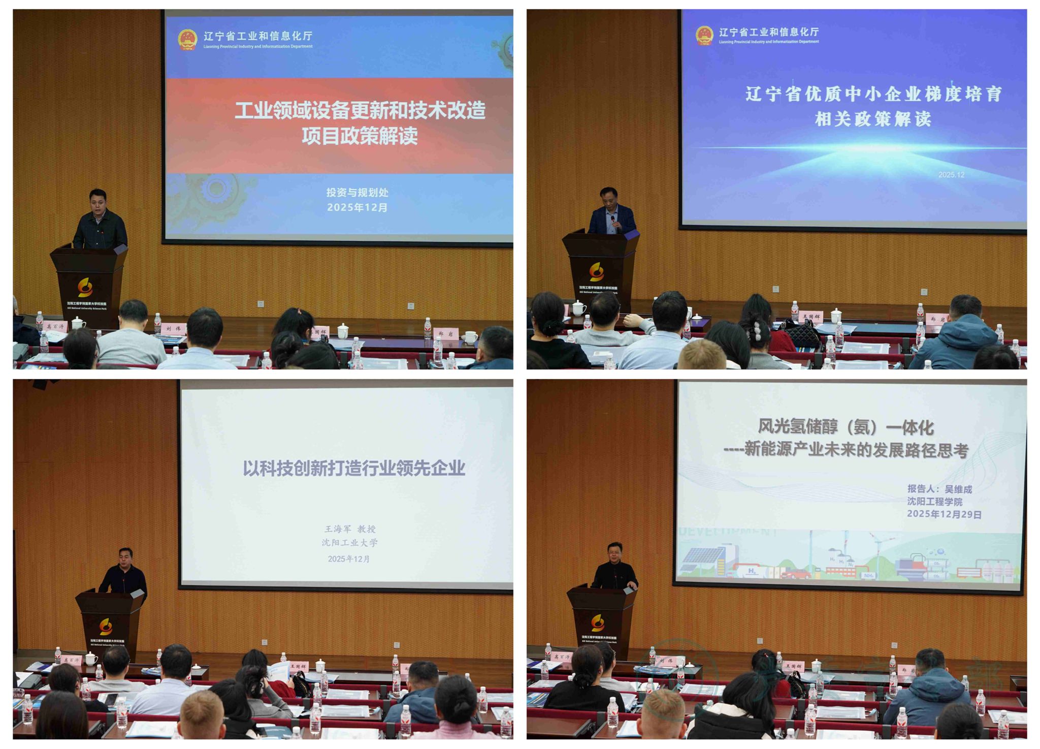 赵琰介绍了学校国家大学科技园情况并解读了共建新型工业化院实施方案。活动期间,省工信厅投资与规划处进行工业领域设备更新和技术改造项目政策解读;省工信厅中小企业处进行辽宁省优质中小企业梯度培育相关政策解读;沈阳工业大学王海军教授作“以科技创新打造行业领先企业”报告;沈阳工程学院吴维成教授作“风光氢储醇(氨)一体化——新能源产业未来的发展路径思考”报告。