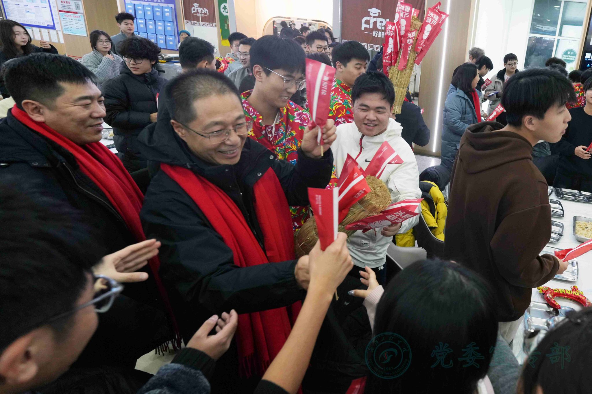 活动期间,学校领导班子深入各学院活动现场,与同学们亲切交流,详细询问大家的学习适应情况与日常生活状况,并为同学们送上寓意甜甜蜜蜜的糖葫芦,让同学们在品尝美味的同时,进一步感受传统节日的浓厚氛围与校园的人文关怀。