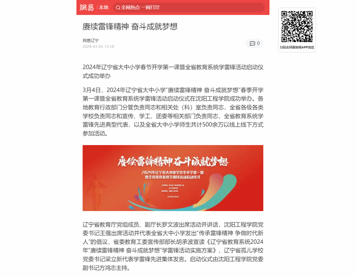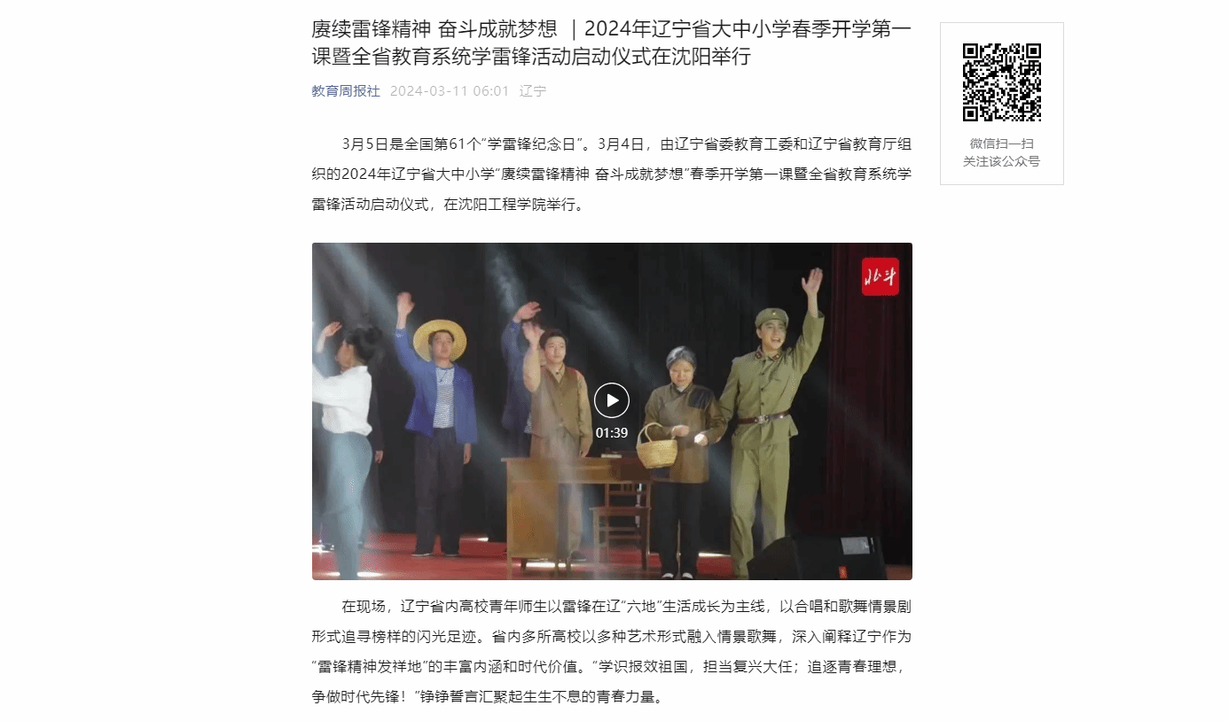 多家主流媒体:2024年辽宁省大中小学春季开学第一课暨全省教育系统学雷锋活动启动仪式在沈阳工程学院举办