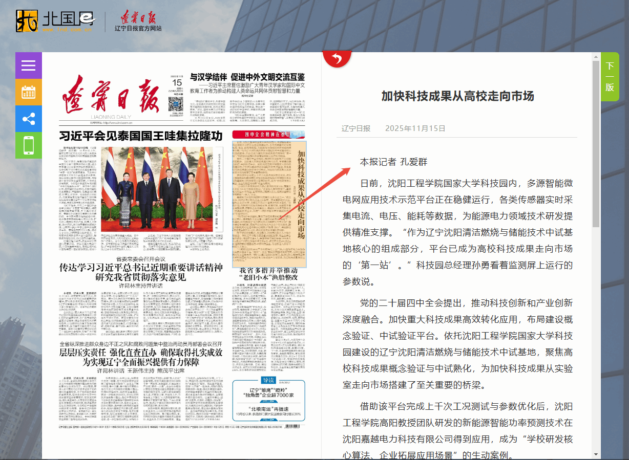 编者按:11月15日,辽宁日报头版以“加快科技成果从高校走向市场”为题,就我校以国家大学科技园为载体,推动科技成果转化、深化产学研融合、助力区域发展的核心实践与成效一事进行报道。现将报道原文转载如下: