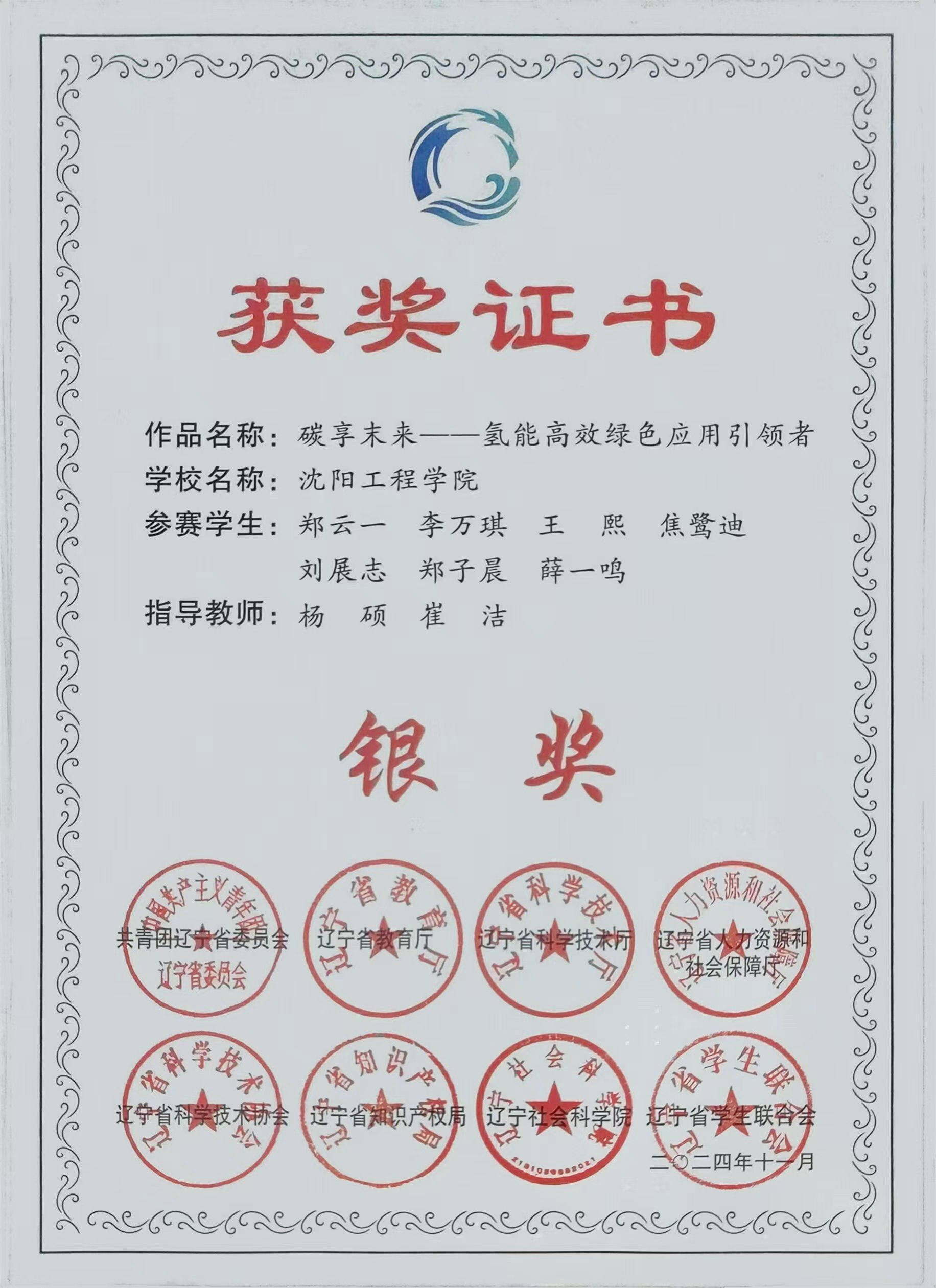 在学业上,郑云一刻苦勤奋,一直保持较高的成绩,平均学分绩点6.75,连年荣评校一等奖学金,先后荣获2024年国家奖学金和2025年校长奖学金。2022年入学至今,她已获评校级以上荣誉20余项。先后发表了3篇SCI论文和1篇中文核心期刊论文。她积极学习专业知识,参加各类学科竞赛。经过不懈努力,荣获了中国国际大学生创新大赛(2023)国赛铜奖、iCAN大学生创新创业大赛国赛三等奖、全国大学生职业规划大赛国赛铜奖等40余项。2025年,她代表辽宁前往湖南长沙参加全国大学生职业规划大赛,在橘子洲头,她以成为一名守护万家灯火的集控运行巡检员为职业目标,展现了沈工程学子的精神风采。赛后,受到了中国青年报和中国教育电视台记者的采访,展现了沈工程青年的青春风采。