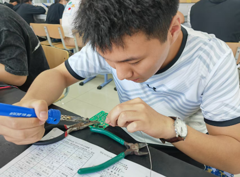 深夜的鞍山供电局,一个年轻人扛着红外测温仪,跟随老师傅穿行在寂静的输电线路下。手电筒的光束划破黑暗,照向高耸的铁塔,他的目光却始终聚焦在仪器屏幕上跳动的温度数据。“夜巡靠手电,更靠心细如线”,老师傅的叮嘱与寒风中簌簌作响的导线声交织。这个场景,定格了电智222班韩锦鹏最珍视的成长瞬间。