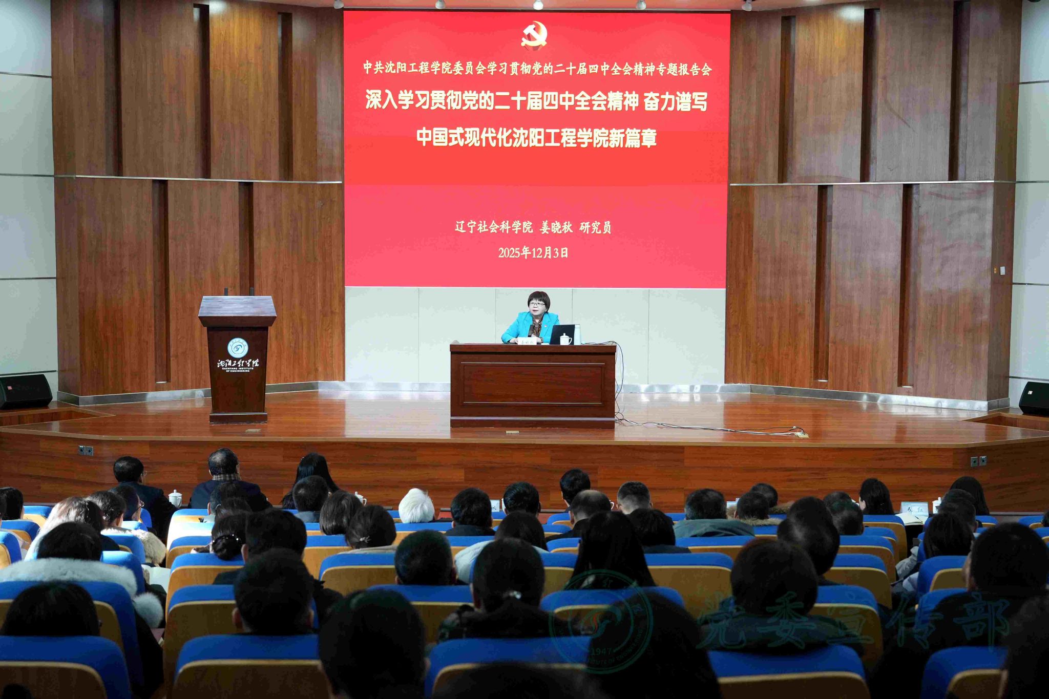 为迅速推动党的二十届四中全会精神与省委十三届十次全会精神在校园落地生根,切实凝聚全校师生思想共识与奋进力量,12月3日,学校在学术报告厅召开中共沈阳工程学院委员会学习贯彻党的二十届四中全会精神专题报告会,全体在校校领导、党委常委,全体中层干部、辅导员、组织员、宣传员、党支部书记,学校党的二十届四中全会精神师生宣讲团成员,校院两级学生会骨干成员参加会议。会议由党委副书记方鸿志主持。12月3日,学校召开学习贯彻党的二十届四中全会精神专题报告会。...