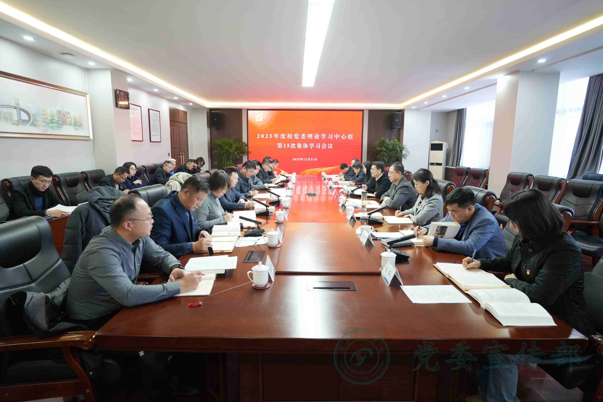 12月31日,学校党委理论学习中心组第15次集体学习会议在校部319会议室举行。全体校领导、党委常委、校长助理及中心组成员参加会议,党委书记王强主持会议并讲话。12月31日,学校党委理论学习中心组第15次集体学习会议在校部319会议室举行。会议专题学习《习近平谈治国理政》第五卷,党委组织部部长葛忠强领学了“进一步健全全面从严治党体系,开辟百年大党自我革命新境界”篇目,经济管理与法学院党委书记王铁领学了“以教育之强夯实国家富强之基”...